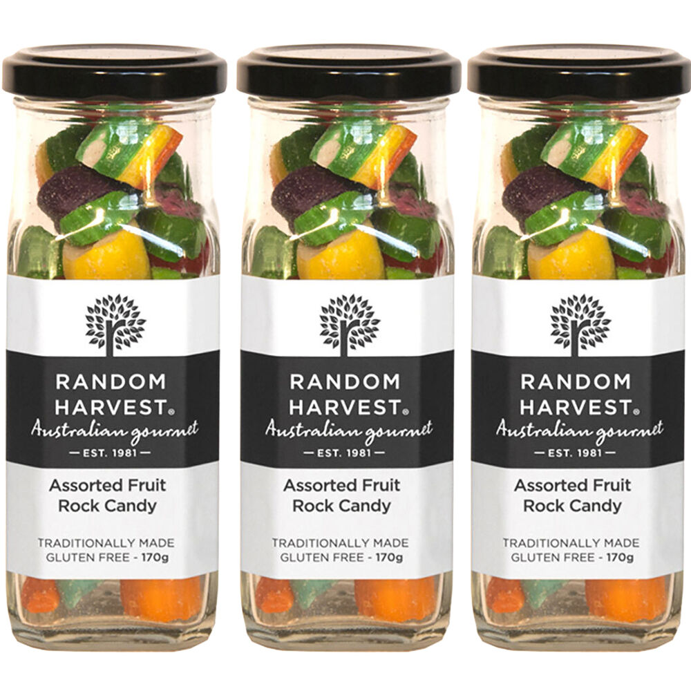 3 x Random Harvest Assorted Fruit Rock Candy 170g Glass Jars