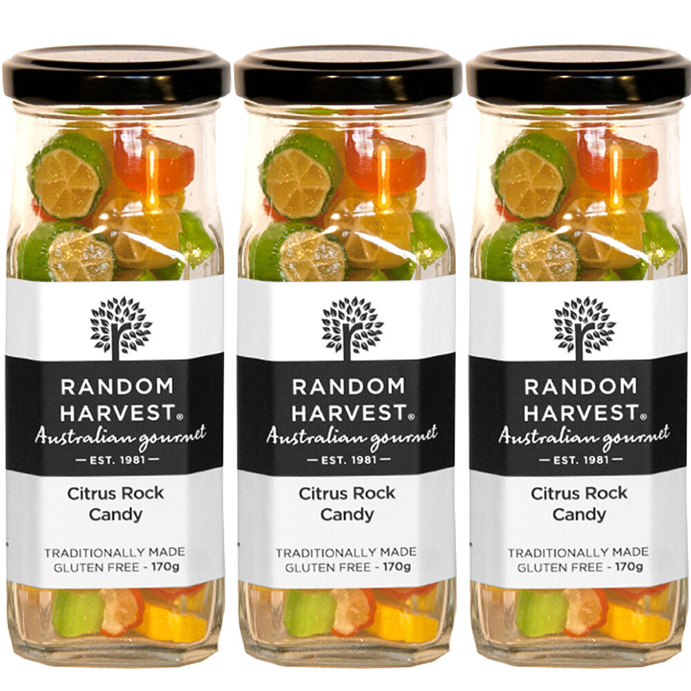3 x Random Harvest Citrus Rock Candy 170g Glass Jars
