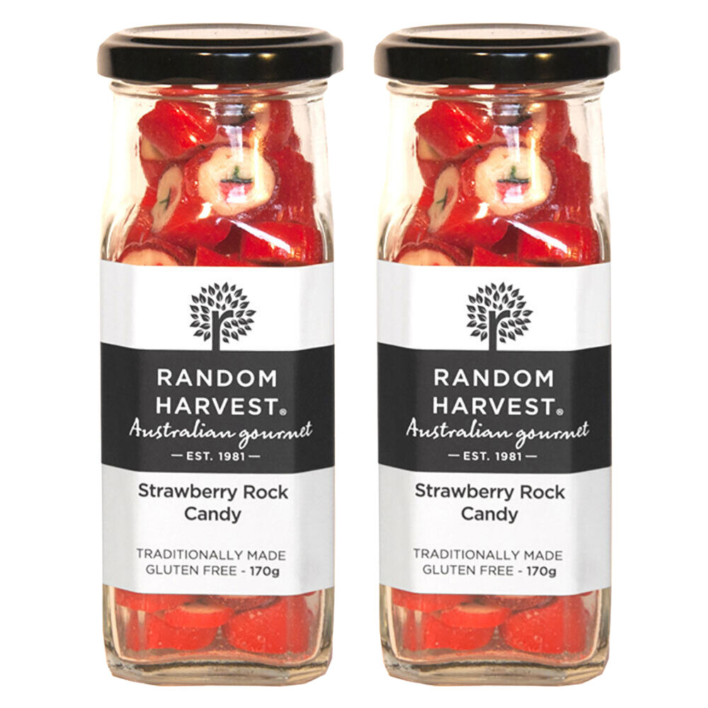 2 x Random Harvest Strawberry Rock Candy 170g Glass Jars
