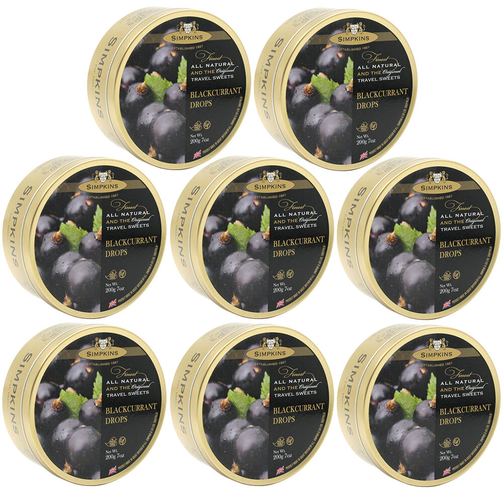 8 x Simpkins Black Currant Flavoured Drops 200g Tins
