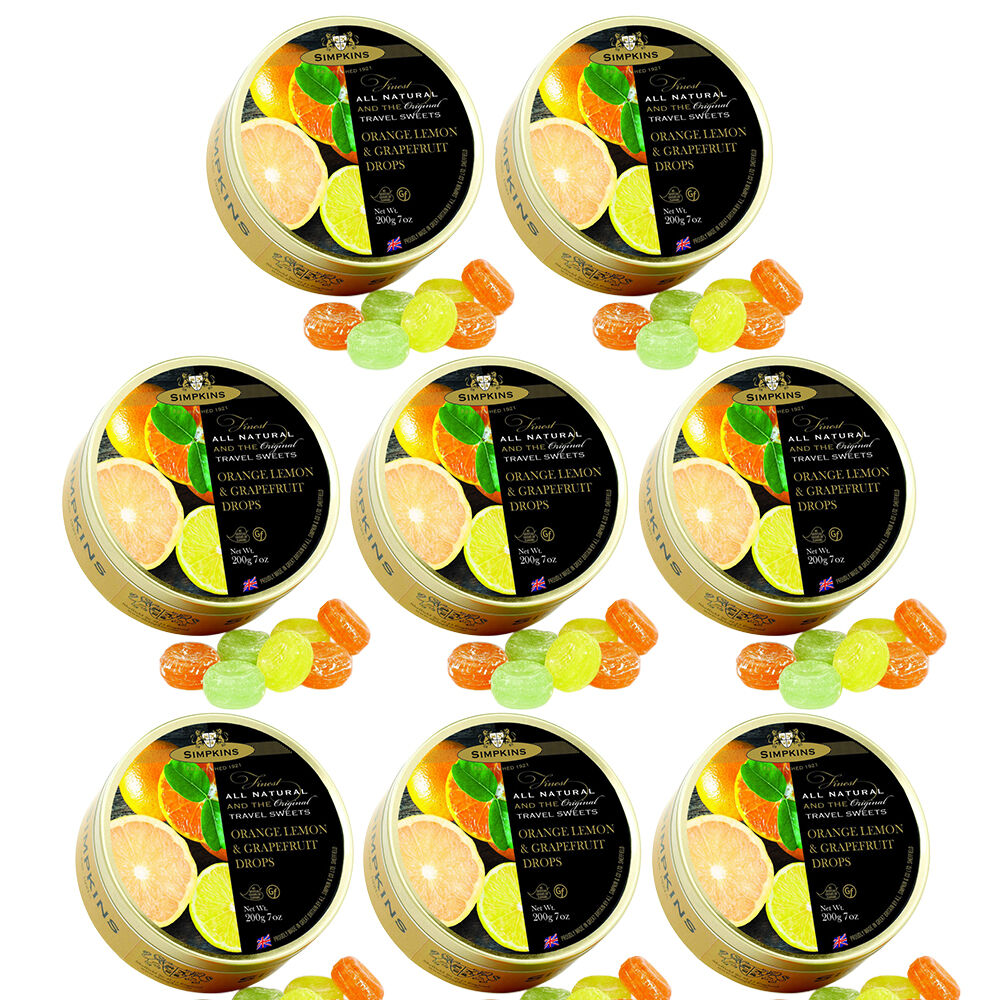 8 x Simpkins Orange Lemon & Grapefruit Drops 200g Tins