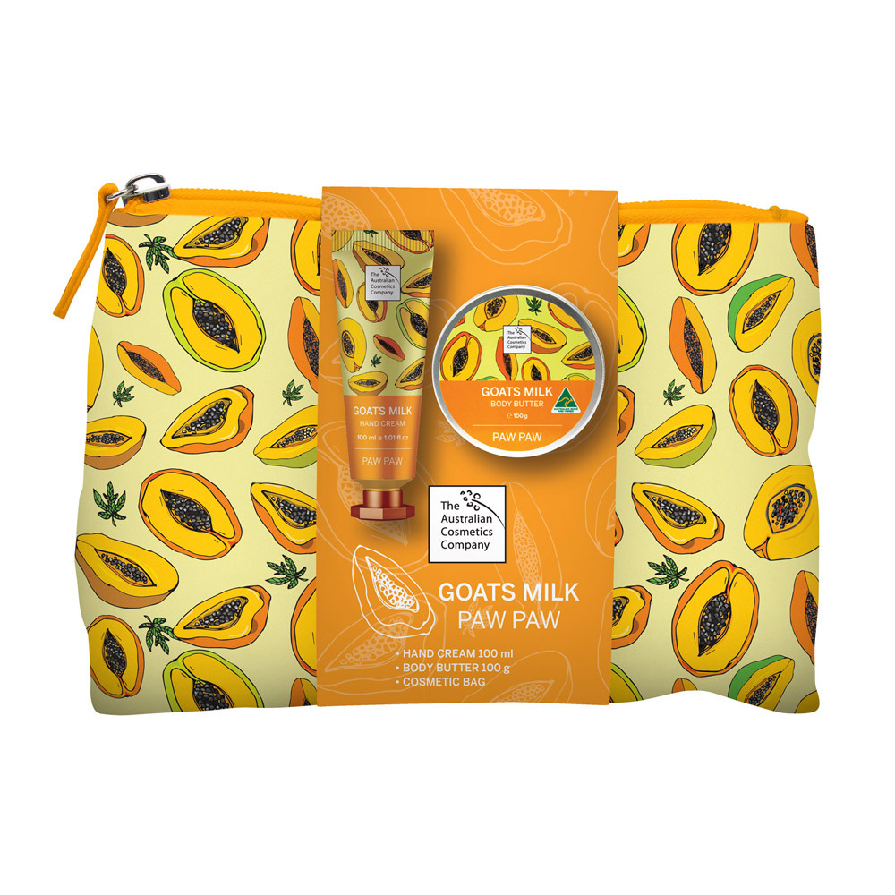 Revitalise your skin with The Australian Cosmetics Company Paw Paw Hand Cream and Body Butter Gift Set. Treat yourself or someone special to this luxurious duo that pampers hands and body. Enjoy the refreshing fragrance and nourishing benefits for a rejuvenating skincare experience.
