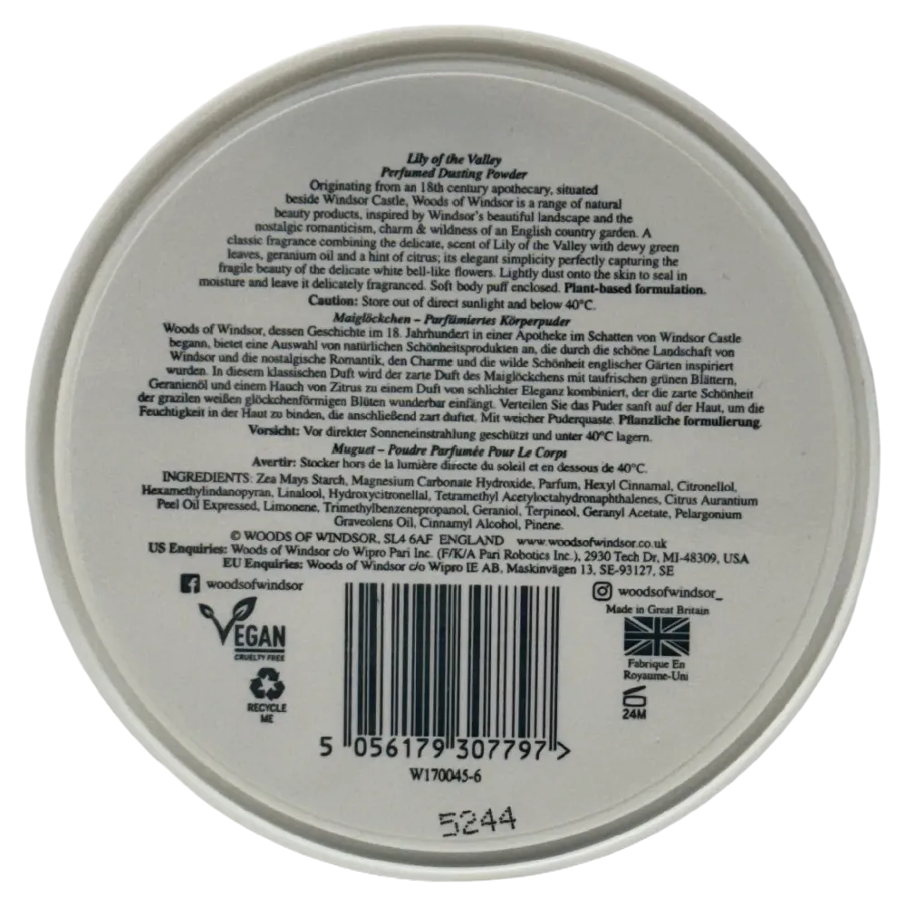 Bring timeless elegance to your routine with Woods of Windsor Lily of the Valley Dusting Powder 100g. This luxuriously scented body powder is designed to absorb moisture and leave your skin feeling soft fresh and beautifully fragranced with a delicate floral scent.