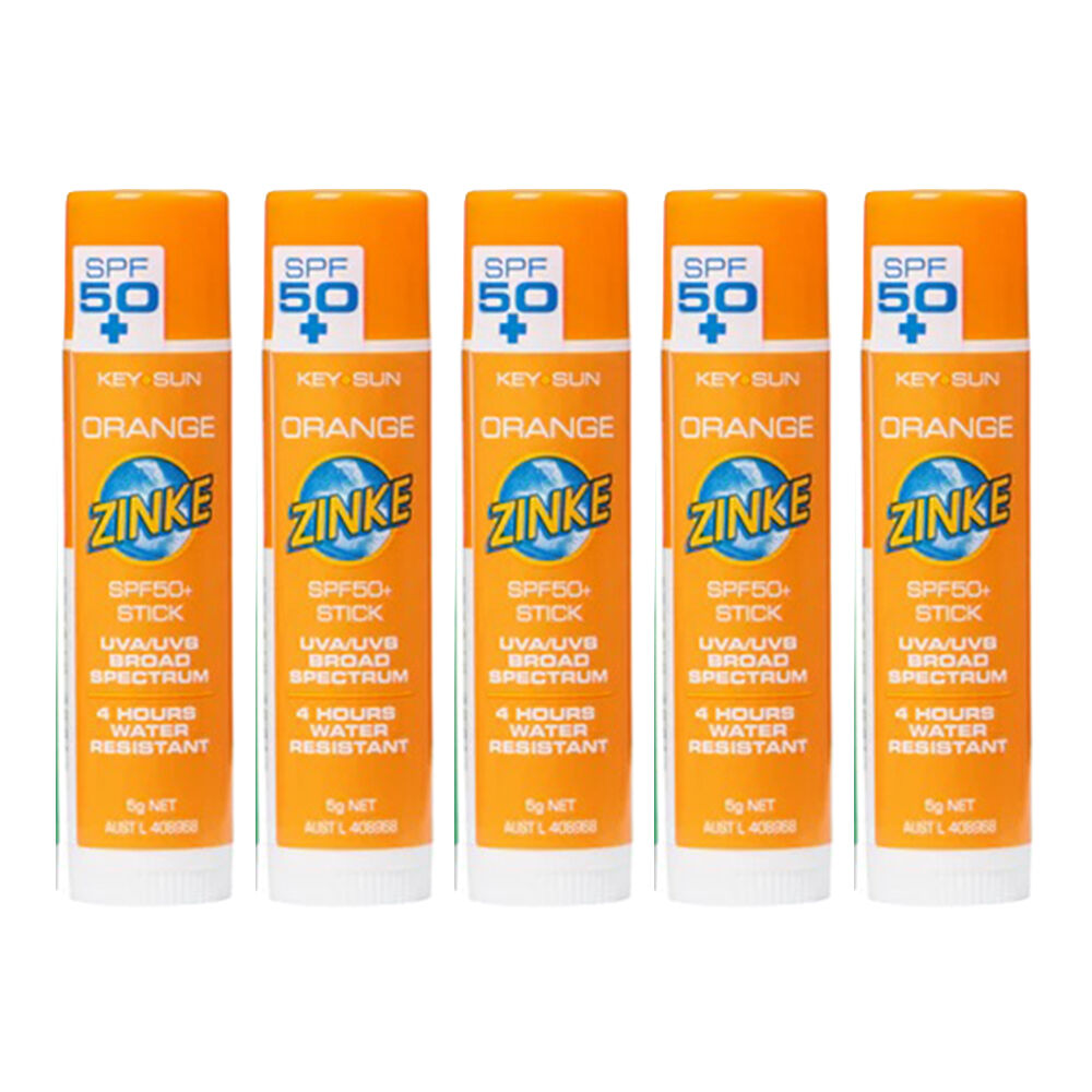 5 x ZINKE SPF 50 Plus Orange Zinc Stick 5g